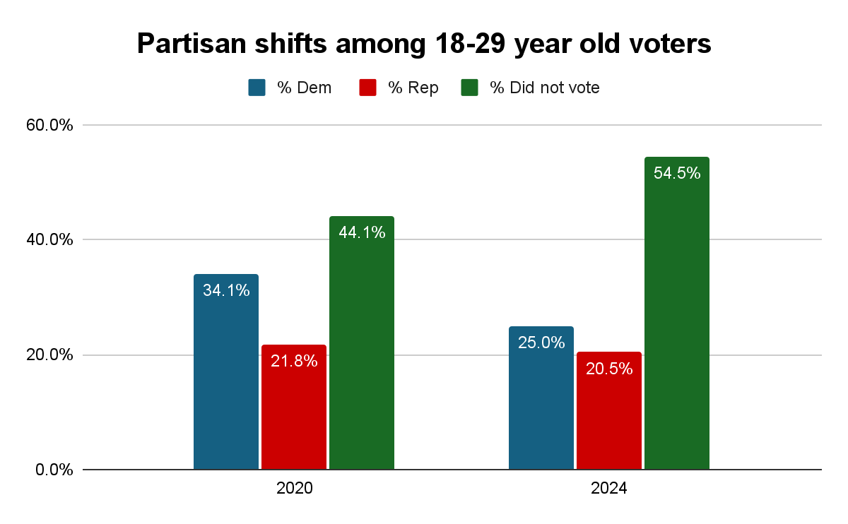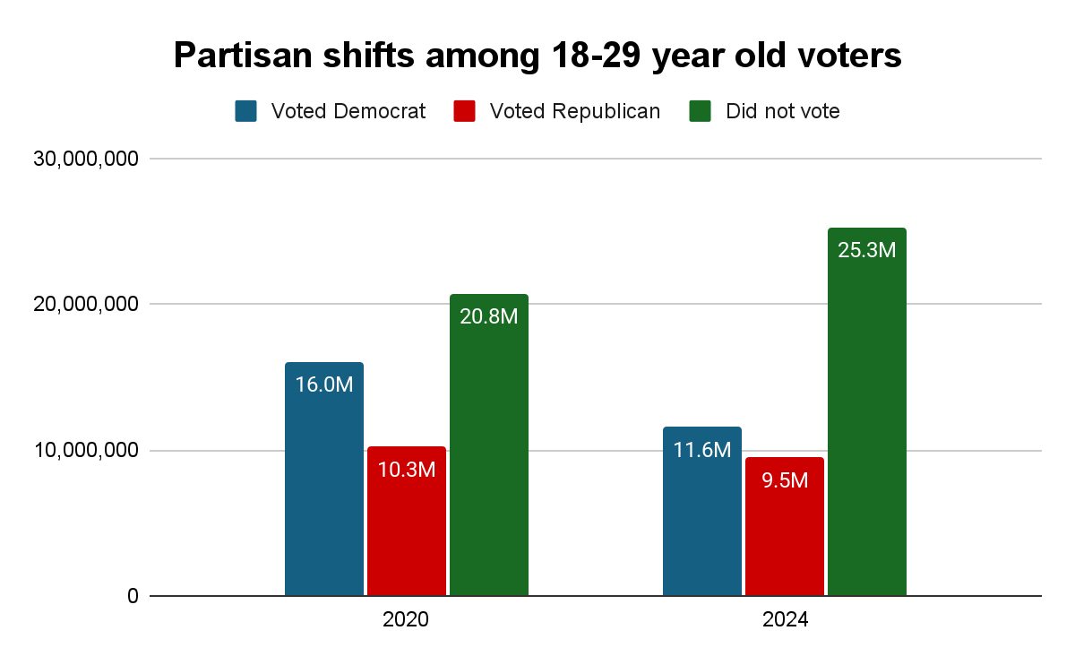 The real story is straightforward: in 2024, young voters didn’t move right. They just didn’t show up.